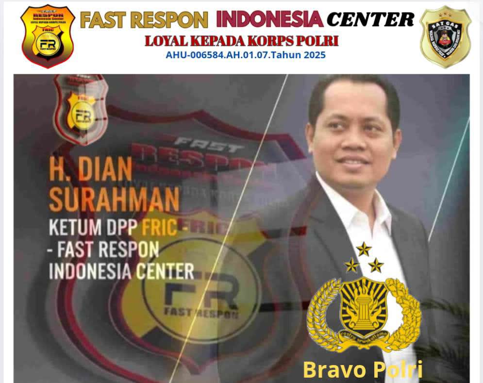 Jakarta/Detektif Brantas.com – Fast Respon Indonesia Center resmi terbentuk di Negara Kesatuan Republik Indonesia bernomor AHU 0006584.AH.01.07 tahun 2025 dan pengakuan lembaran Negara nomor 93 Tambahan Berita Negara 012310 tahun 2022 dan UU Advokat nomor 18 Tahun 2023 dan UU Pers Nomor 40 Tahun 1999